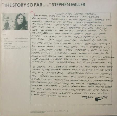 スティーヴ・ミラー / ロル・コックスヒル "THE STORY SO FAR ....." STEPHAN MILLER "..... OH REALLY? LOL COXHILL